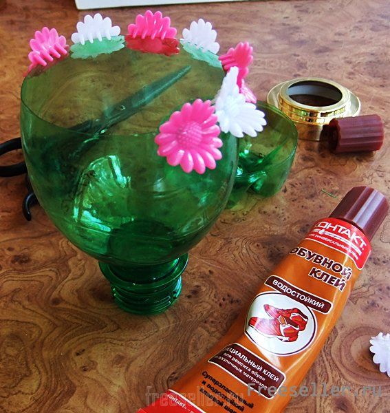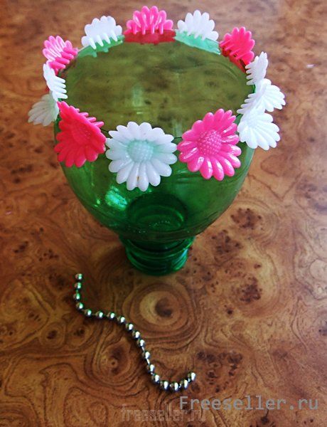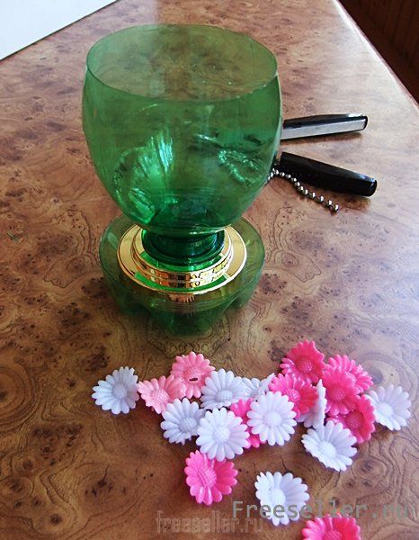 Теперь на срез наклеиваем ромашки - это половинки женской зажимки для волос. (Стоят копейки в любом книжном киоске).