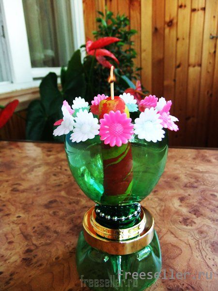 Самодельный подсвечник из пластиковой бутылки. Создадим своими руками из доступных материалов, например на даче вот такой подсвечник.