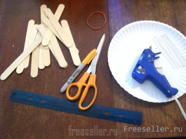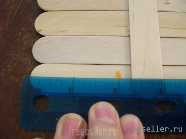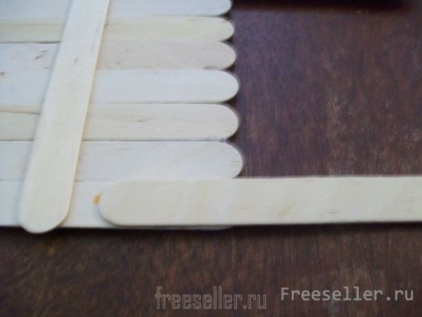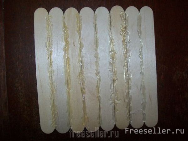 Выкладываем палочки одна к одной и склеиваем их между собой.