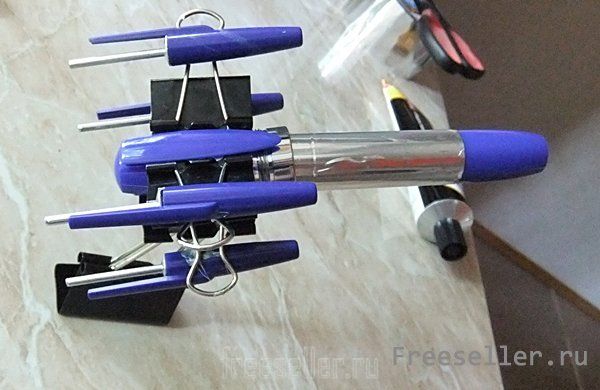 Получилась подставка для звездолета. Теперь склеиваем ее с корпусом маркера.