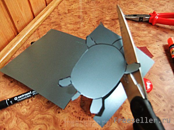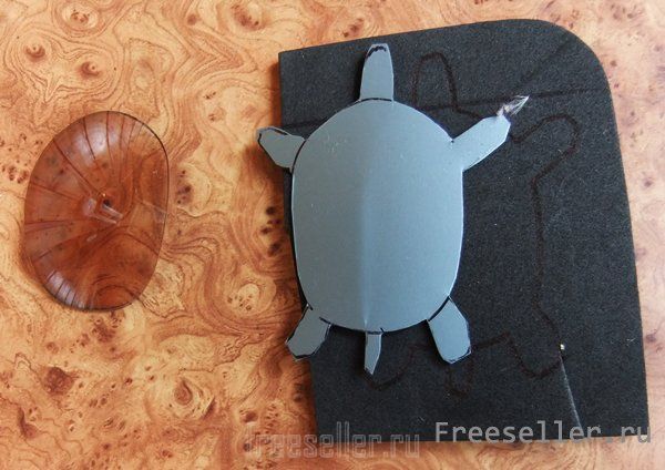 Склеиваем панцирь с телом и фломастером наносим легкие штрихи морщин, когти и узоры на панцире.