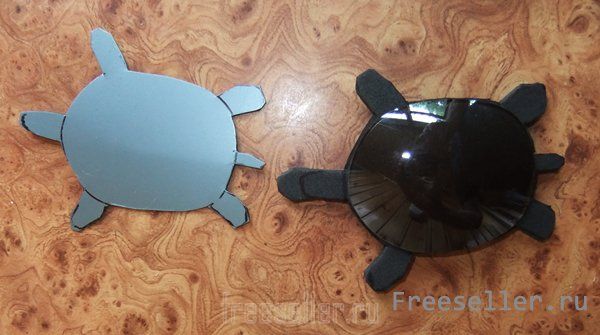 Из картона вырезать контур черепашки с размером панциря со стекло очков.