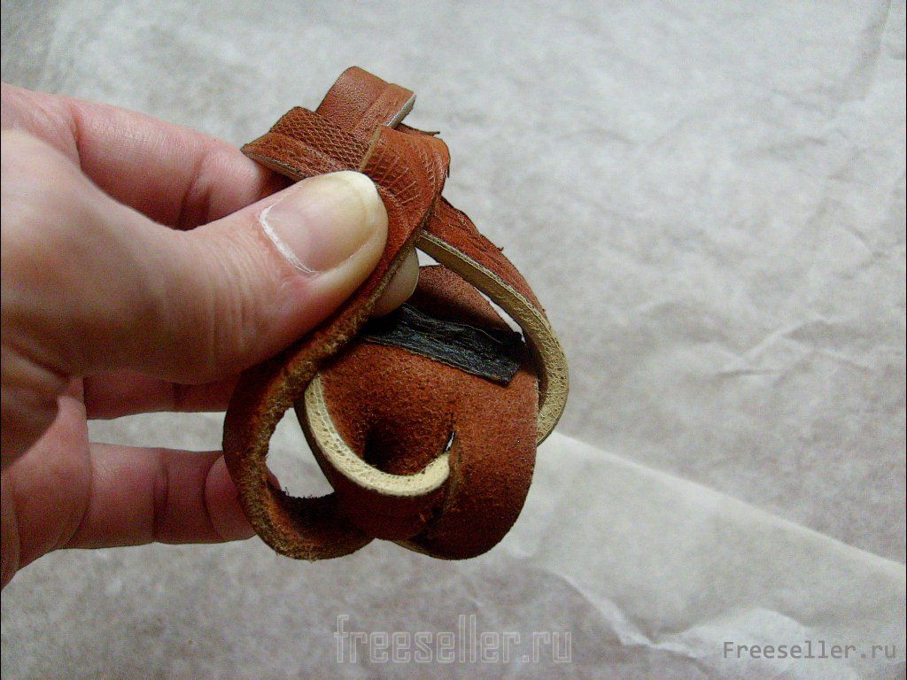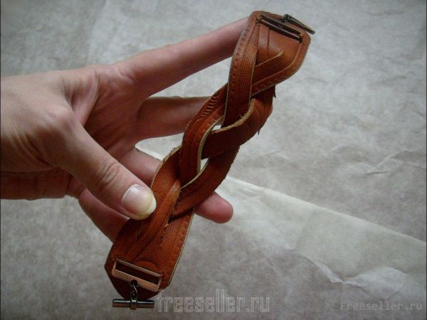 Чтобы сплести косичку из длинного ремня, просто чередуем два шага. Первый - тройное перекрещивание, выполняемое то справа, то слева. Второй - протягивание нижнего конца ремня в прорезь с той же стороны, с которой начинали перекрещивание.