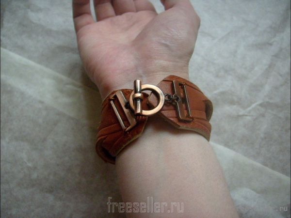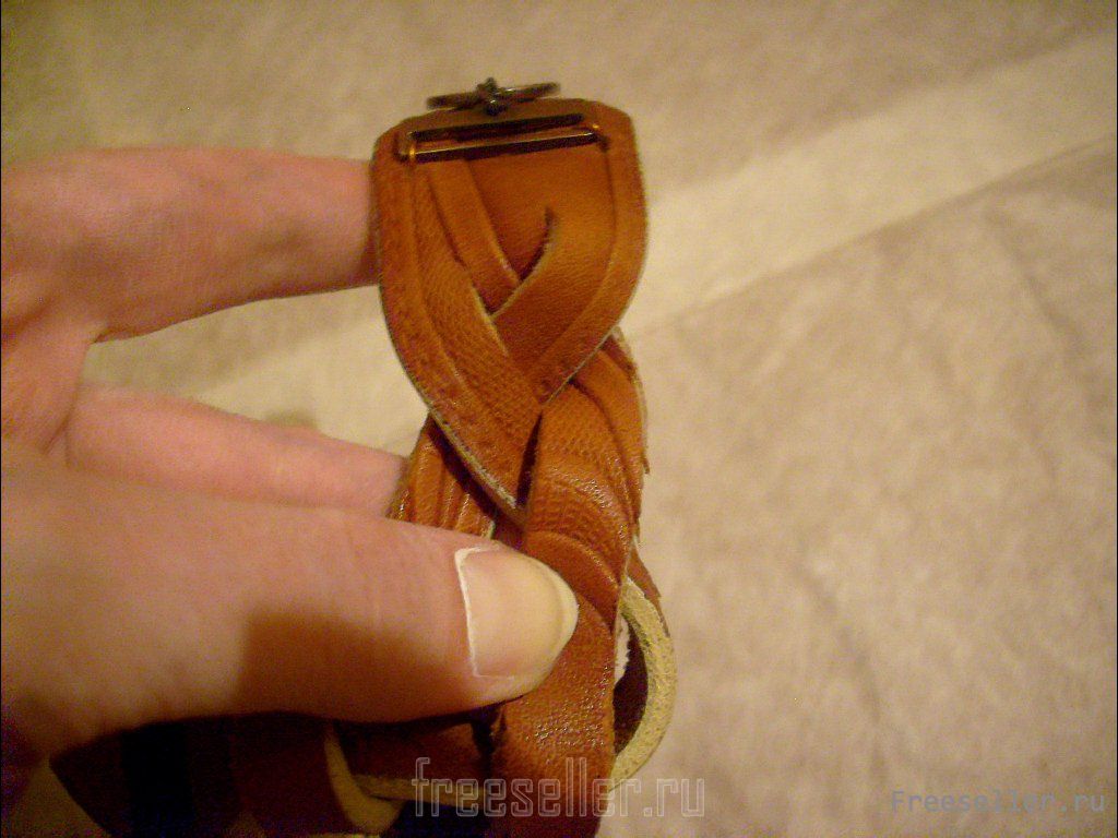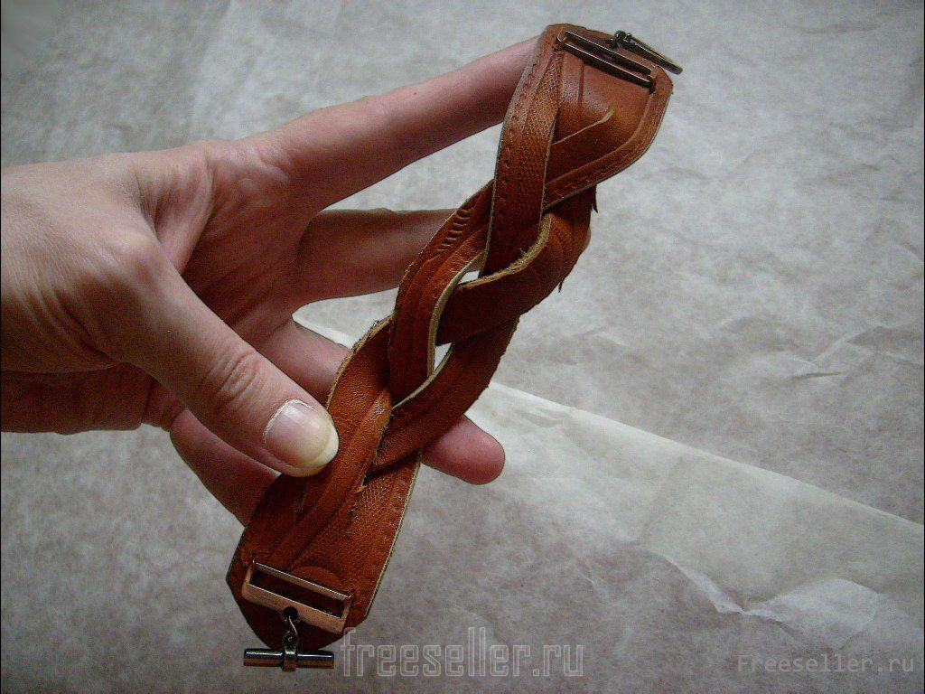 Плетём браслет - косичку своими руками.Из отрезка кожаного ремня можно сплести простой и изящный браслет в модном сейчас этническом стиле. На концах ремня крепим детали пряжки-застёжки. А далее мастерим внутри хитрую "косичку".