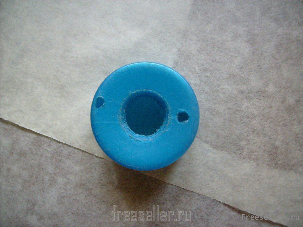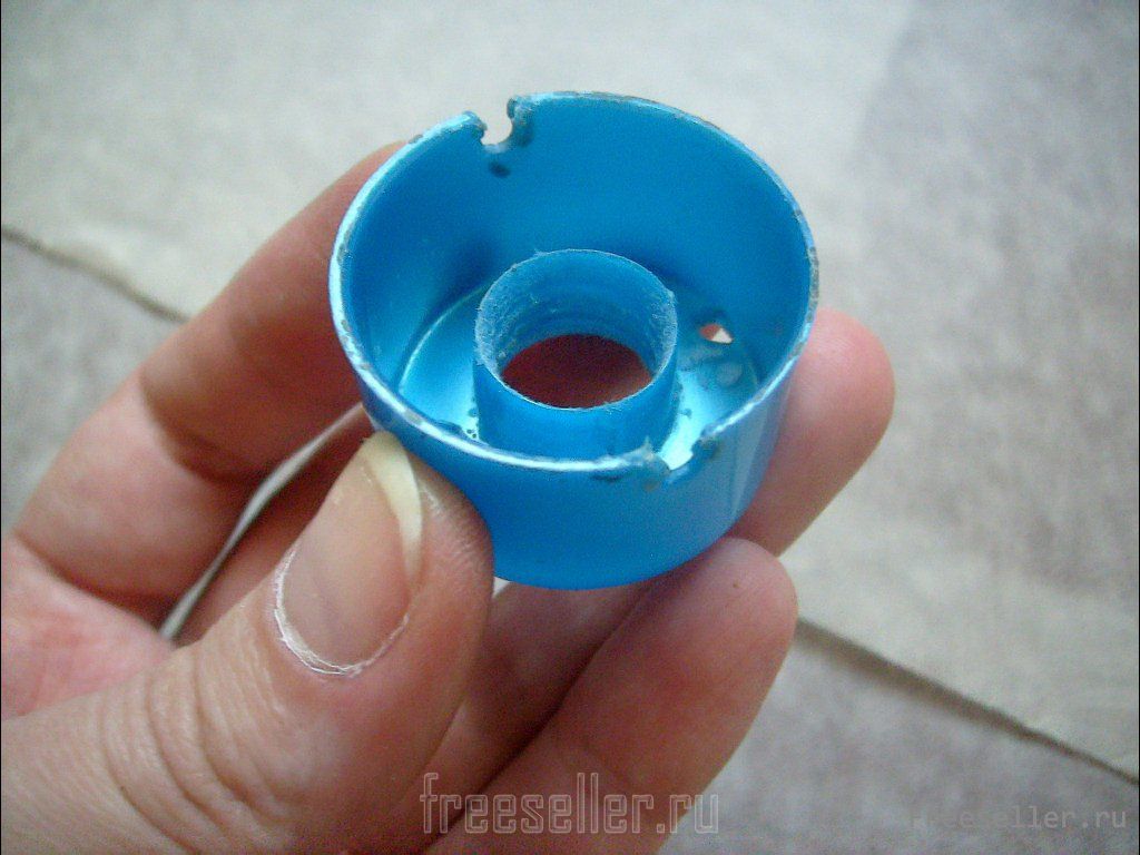 4. В крышке от тюбика (например, из-под крема) подходящего размера проплавляем посередине отверстие. Расширяем его напильником, как бы выскабливаем, до самой резьбы. Ещё два отверстия (опять же, хватило одного) проплавляем для крепления патрона, приложив крышку и точно разметив нужную точку.