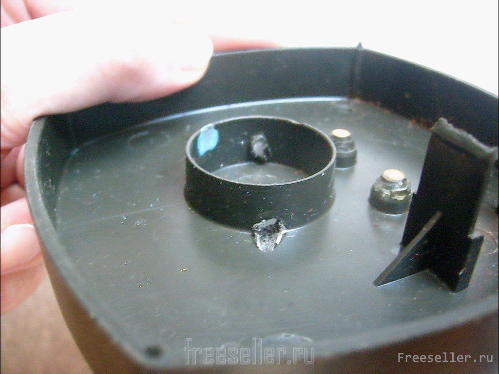 2. В задней стенке корпуса есть круглая ниша под динамик. Раскалённым гвоздём выплавляем в её основании напротив друг друга два отверстия.