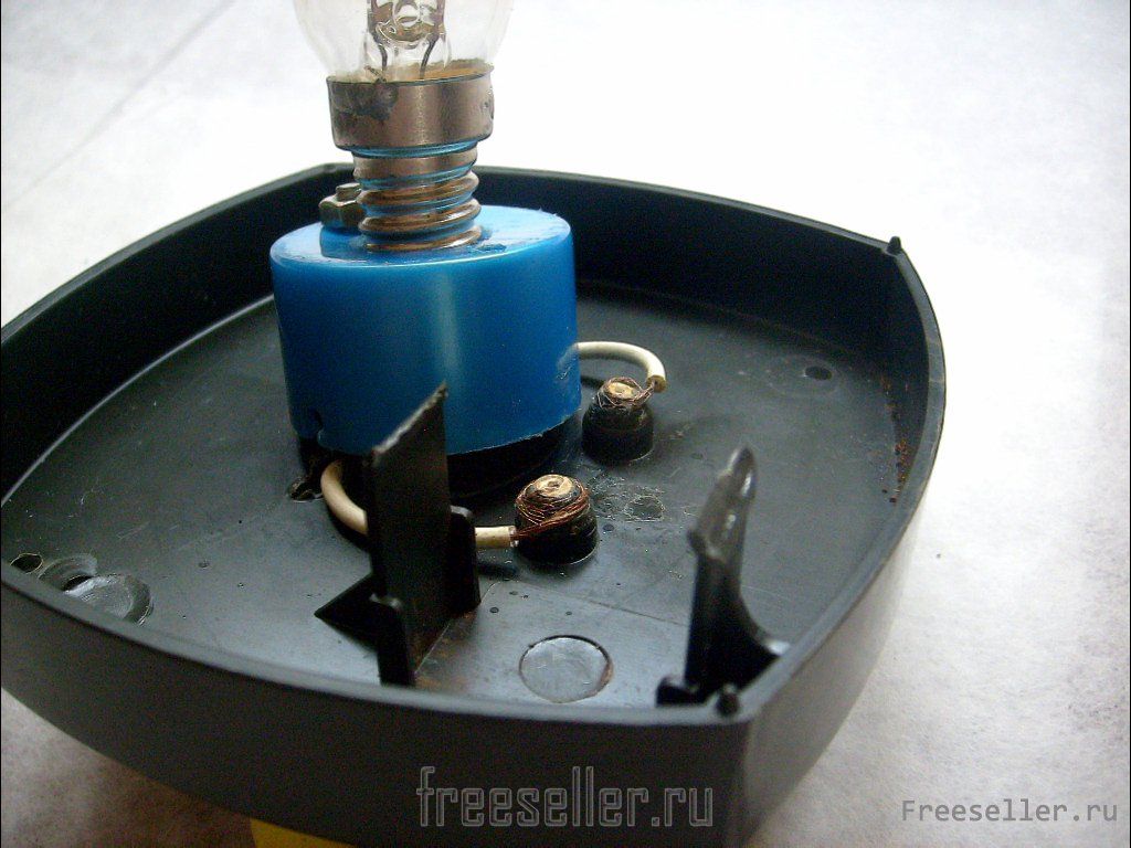 5. С помощью винта и гайки крепим патрон с лампочкой - привинчиваем его к задней стенке корпуса.