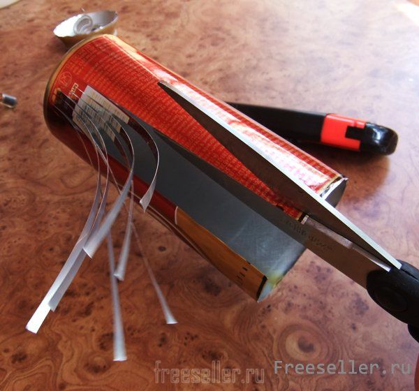 Начинается самая кропотливая часть всей работы. Разрезание банки на ленточки было всего лишь прелюдией. Набирайтесь терпения!