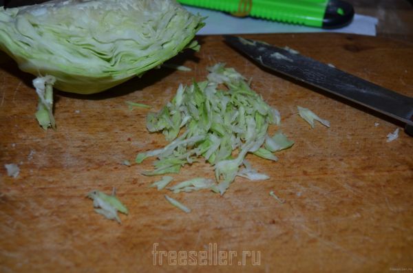 Для травки необходимо нарезать немного капусты. Все это выкладываем на тарелочку. Наш вкусный завтрак готов!