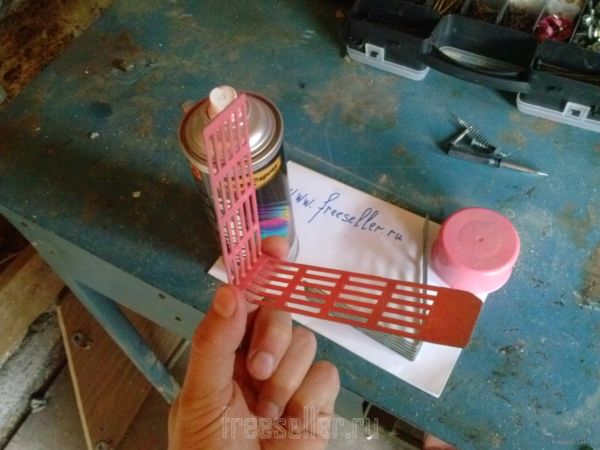 Взял старую решетку и отрезал от нее две ровные полоски. После чего предал им нужную форму, очистил от грязи, покрасил с баллончика и прикрутил на стену.(под шкафчиками из прошлой самоделки)