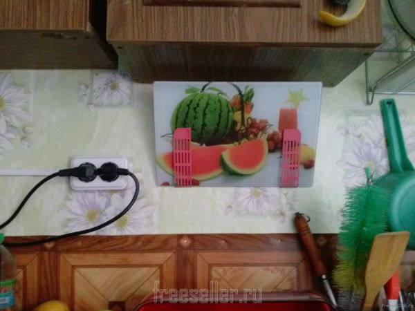 Купили стеклянную кухонную "доску", а она оказалась без отверстия, что бы ее повесить. Вот и пришла такая идея. А впоследствии она оказалась еще и многофункциональной!