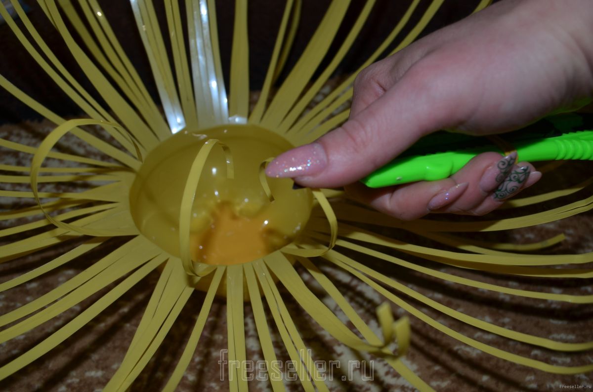 4. С помощью канцелярского ножа необходимо закрутить полоски;
