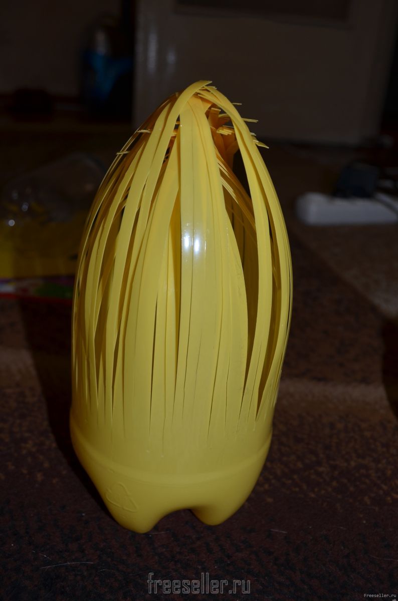 2. Далее нам необходимо среднюю часть бутылки порезать на тоненькие одинаковые полоски.