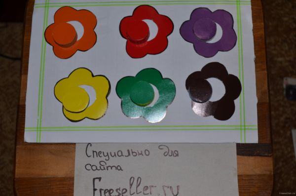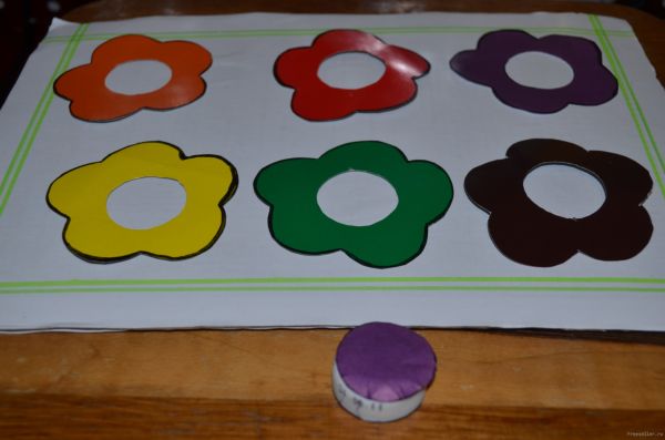 Серединку крепим к крышке. Это делаем с 6 цветками. Наша игра «Угадай цвета» готова!
