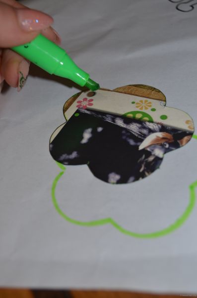 Берем цветок и обводим в серединке маркером крышечку. Вырезаем серединку.