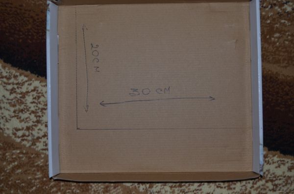 Сначала нам нужно приготовить основу для игры. Берем плотный картон и рисуем прямоугольную фигуру. Потом вырезаем. Почему мы не взяли обычный картон? Он слишком тонкий и основа игры будет выглядеть не презентабельно.