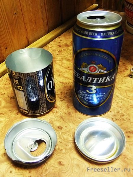 Вообще-то принято делать аромолампы из керамики, глины, гипса... А если нет времени, нет подходящих материалов, но обстановка требует создания ореола интимности и благоденствия - попробуйте предлагаемый выход из положения. Можно сделать поделку из пары пустых пивных баночек, свечи и маленького диска CD. Начинаем работу с того, что отрезаем у одной баночки горловину и у другой донышко.