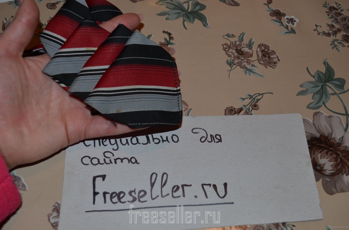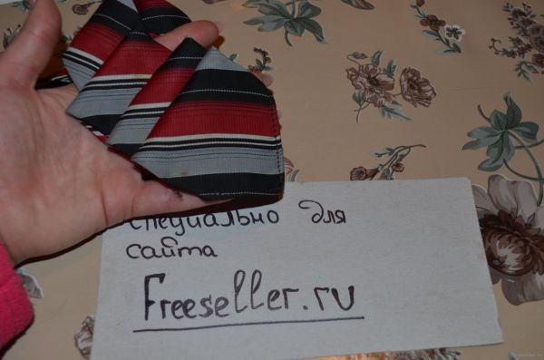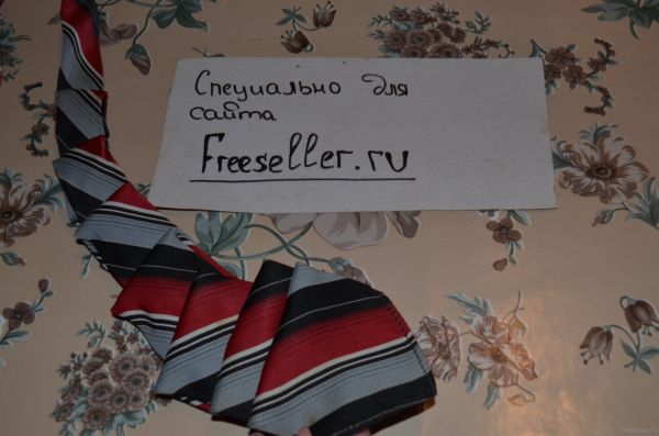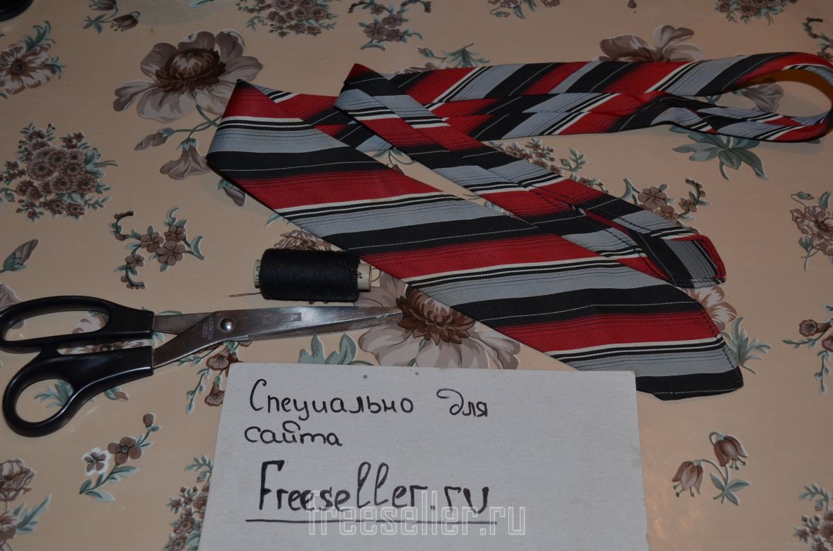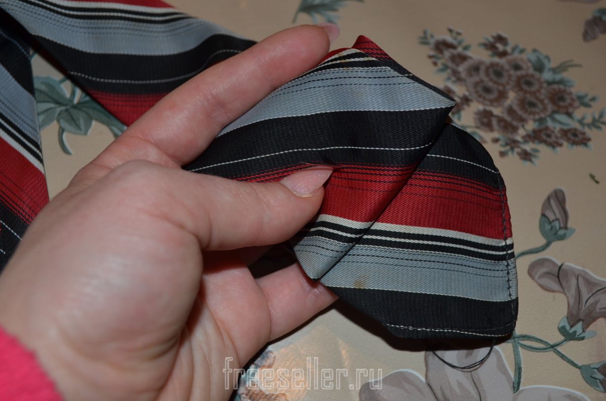Берем галстук и с самой широкой стороны делаем складку шириной около трех сантиметров. Крепим ее нитками, как показано на фото ниже.