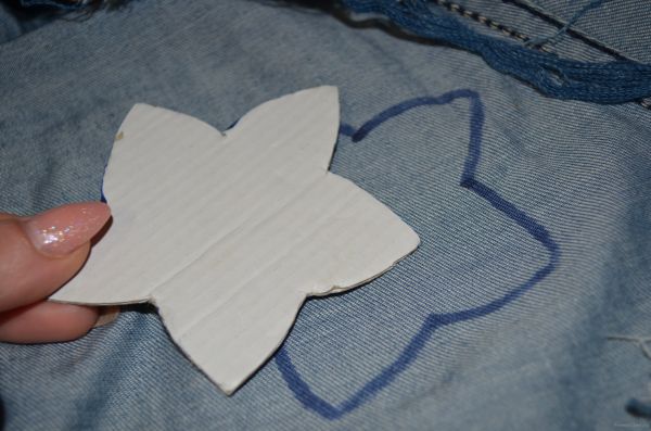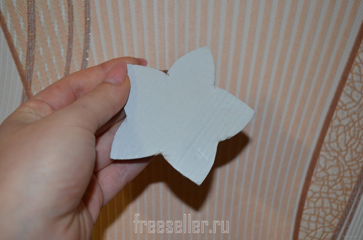 1) Из картона делаем шаблон звездочки. Вырезаем.