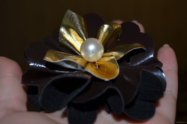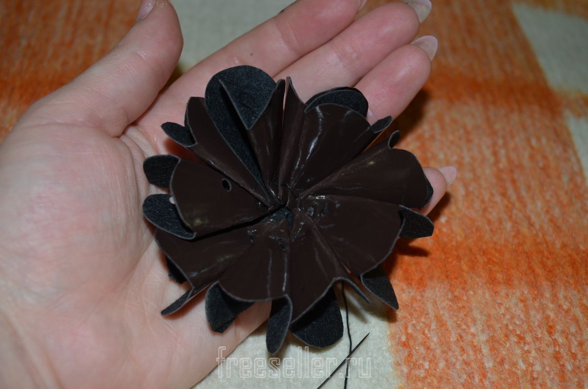 6) Далее цветок крепим к сумке. Я его пришила, также можно закрепить булавкой или клеем.