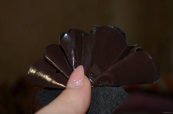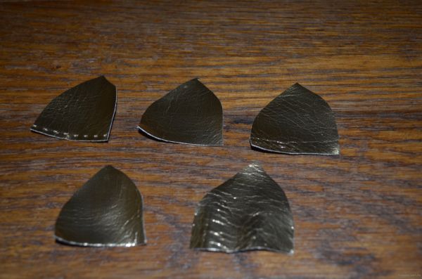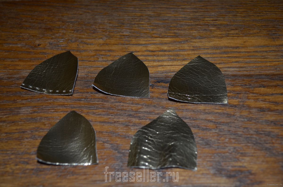 2) Фигурку, сделанную в предыдущем пункте, обводим на кожаном ремне. Вырезаем лепестки. Для лепестков я взяла пояса разных цветов. В общем количестве мне понадобилось около 20 лепестков.