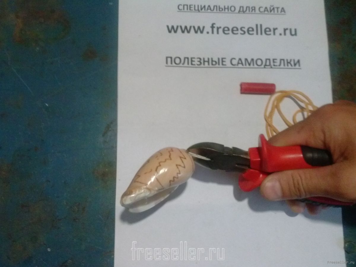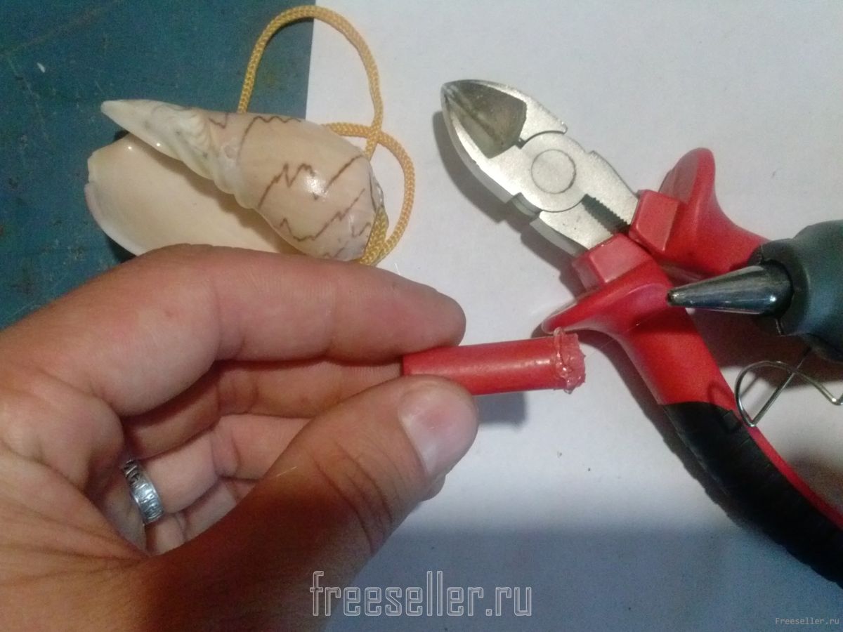 Затем кусачками необходимо откусить у ракушки кончик, (как показано на фото). Старайтесь это делать очень аккуратно, т.к. можно пораниться осколками.
