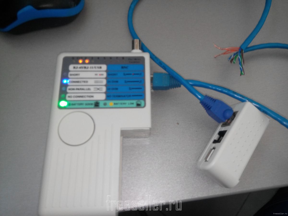 Несколько месяцев назад приобрел вот такой вот беспроводной девайс (в народе его называют LAN тестером) для прозвонки на обрыв и неправильное подключение: