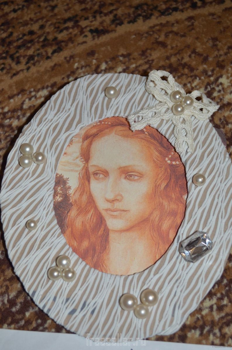 3) После того как картон обтянули тканью крепим с помощью клея и ниток бусинки, бисер. Можно украсить блестками и прочим декором.