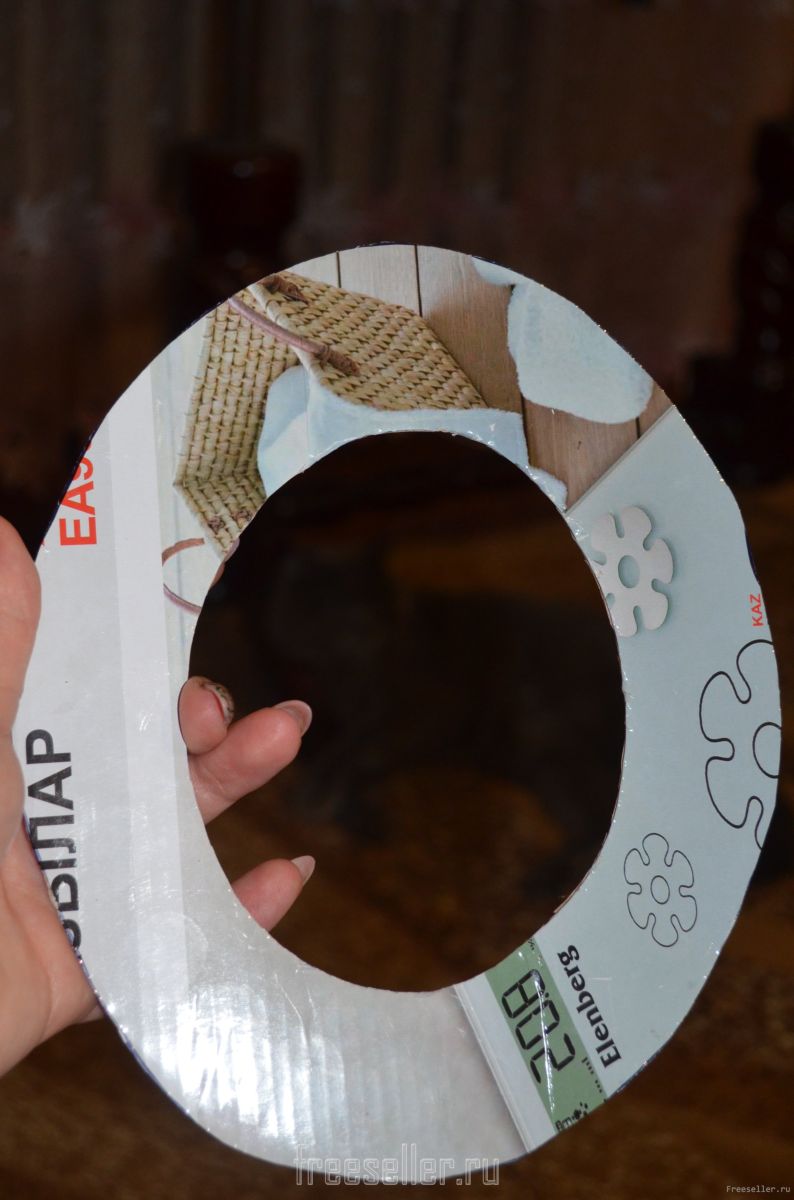 1) Берем картон (толстый, чтоб не прогибался) и рисуем овал. Вырезаем.