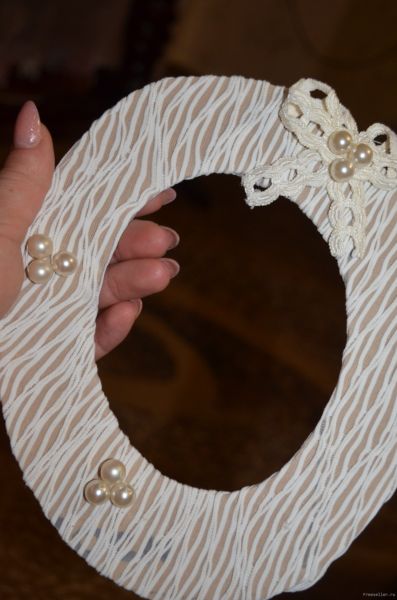 4) Из ленточек делаем бантики и пришиваем к рамочке.