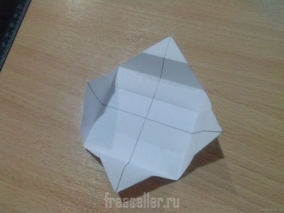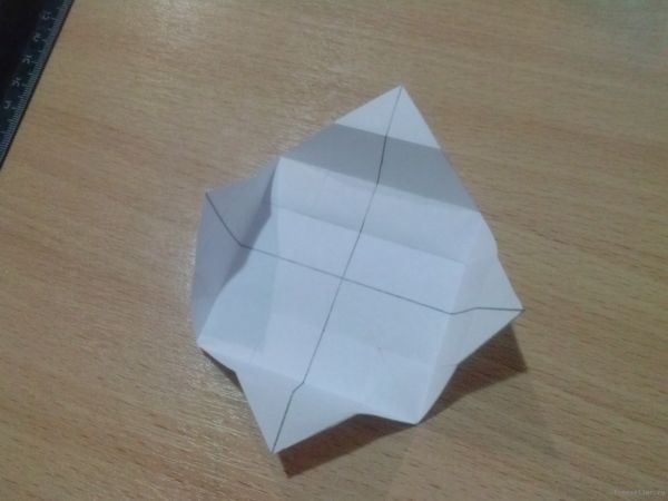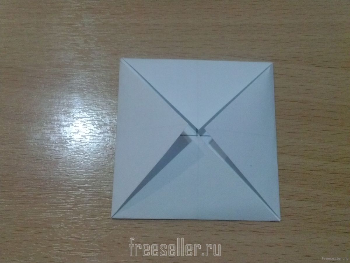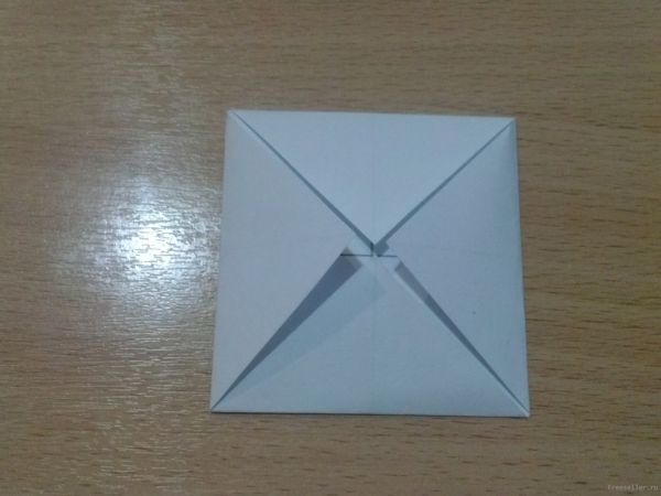 Каждую сторону квадрата так же загибаем к середине, как показано на фото.