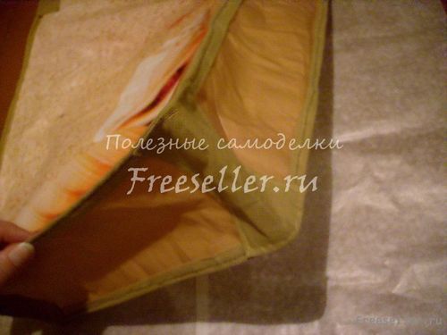 4. Широкими полосками обшиваем верх пакета.