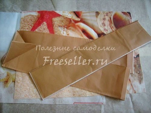 Из этих же полосок кроим и пришиваем две обтачки для швов стачивания боковин с дном.
