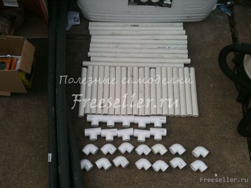 1) Подготовка всех деталей. Нарезал трубу на части 3-х размеров: