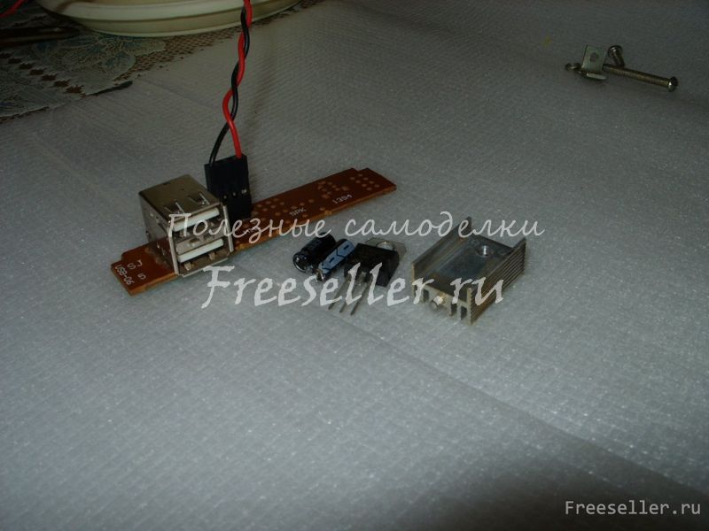 Для того чтобы достать все это достаточно сходить в ближайший магазин радиодеталей или же можно использовать вышедшие из строя блоки питания, зарядники от телефона, системный блок от компьютера и т.п. Мне удачно подвернулся двух разъемный USB с выводами на небольшой плате (вытащил с лицевой панели старого системного блока).