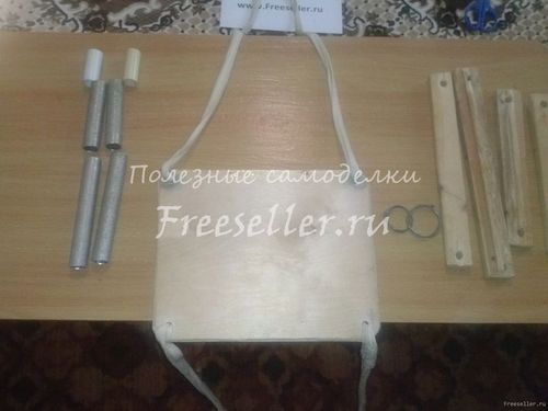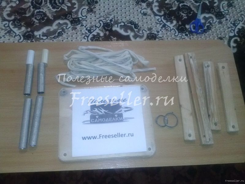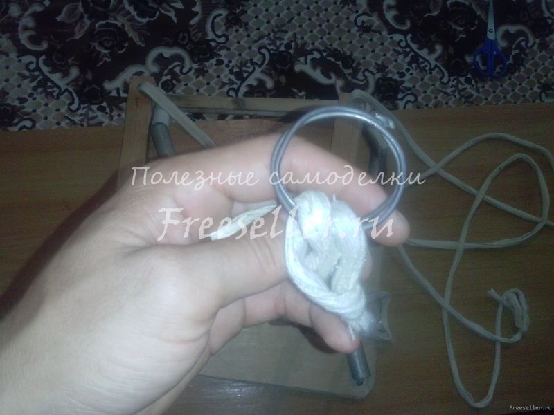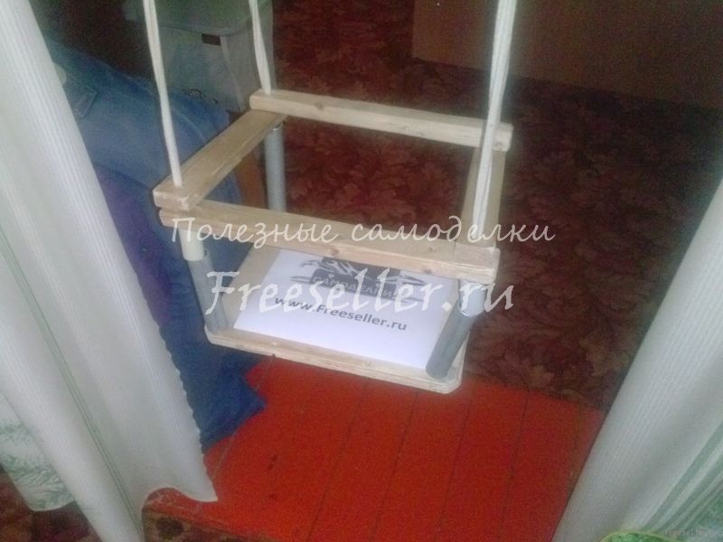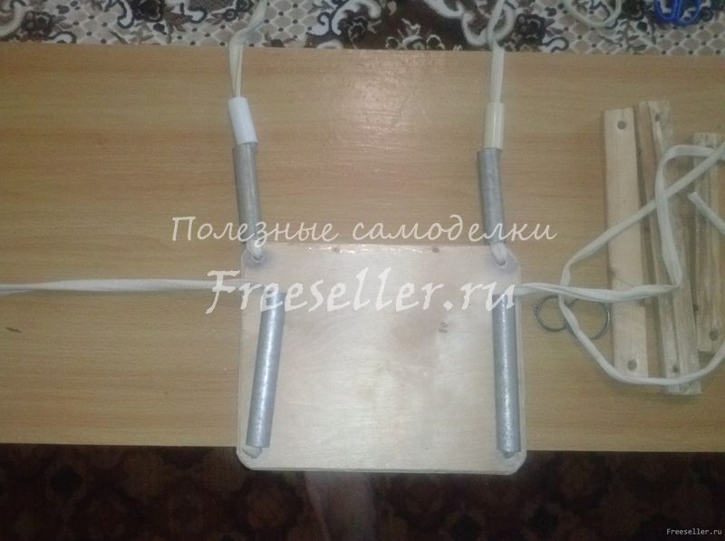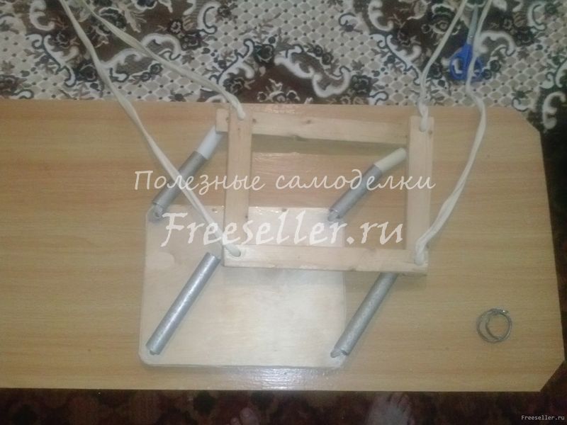 Далее продеваем веревку через просверленные отверстия в сидушке и ставим трубки-ограничители.