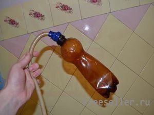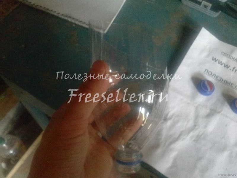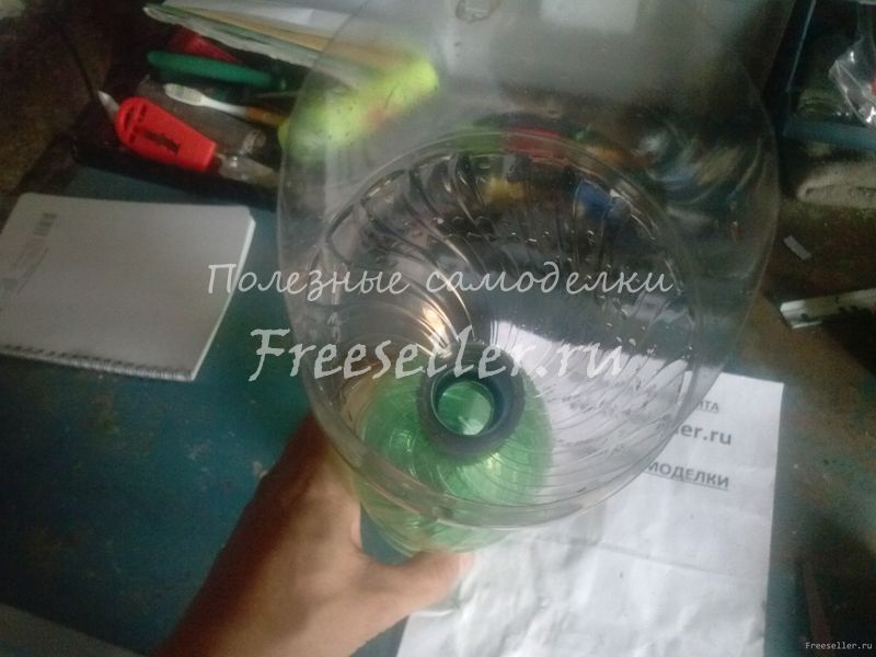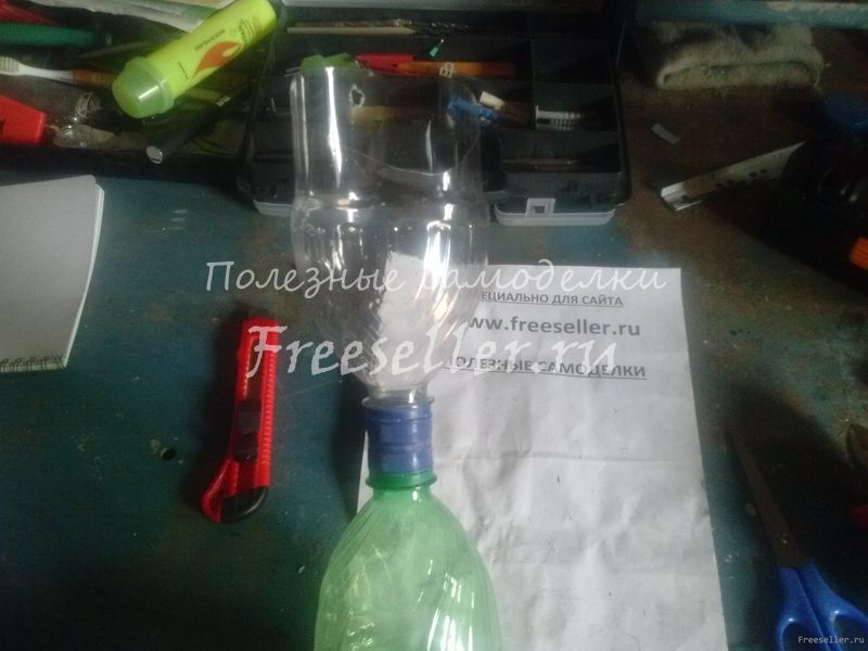 Затем накручиваем с одной стороны ту верхнюю часть бутылки, которую мы отрезали, а с другой стороны накручиваем на другую бутылку.