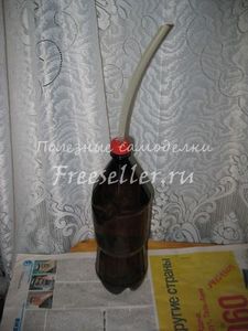 Сперва ножницами отрезаем от бутылки верхнюю часть.