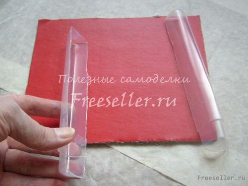 1. Из картона, фанеры или оргалита вырезаем основу ключницы - заднюю стенку. Мы выкроили её из ненужной папки-скоросшивателя.