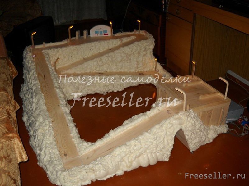 На день рождения малыша захотелось создать необычный подарок. Закуплена монтажная пена, пистолет, несколько досок и саморезы.