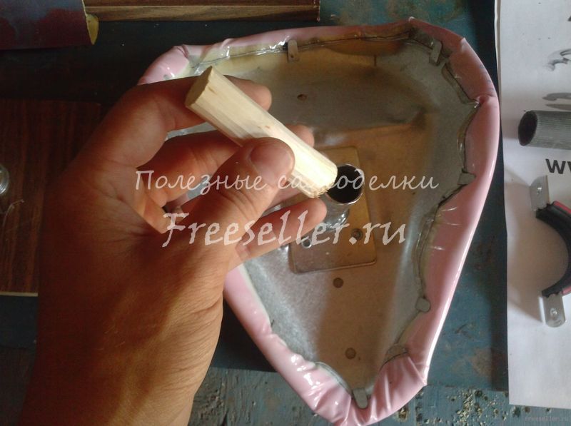 Далее выстругиваем деревянный чепик и вставляем его в трубку сиденья: