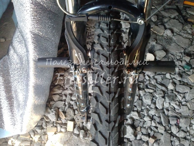 Далее прикручиваем хомут к раме велосипеда. (в моем случае пришлось немного под хомут подложить металлическую пластинку, обмотанную изолентой, для более прочного скрепления)и накручиваем сиденье: