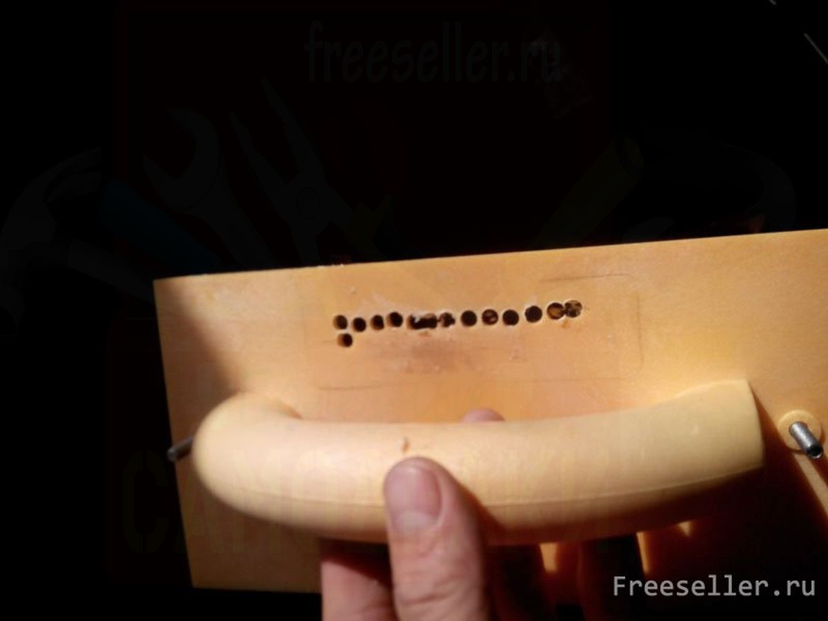 С помощью клеевого пистолета наносим клей по всему периметру насадки и приклеиваем его к доски. Дожидаемся высыхания и наносим по шву дополнительный слой клея.