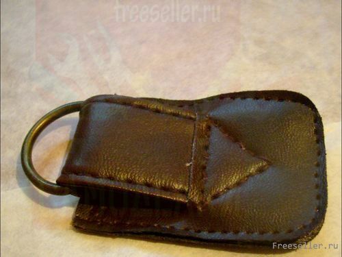 9. Вшиваем сложенный вдвое короткий ремешок, надев на него пряжку. Вторую деталь мастерим таким же образом.