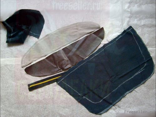 4. Сшиваем внутренние детали с кожаными передней и задней частью с изнанки. Выворачиваем их на лицо.