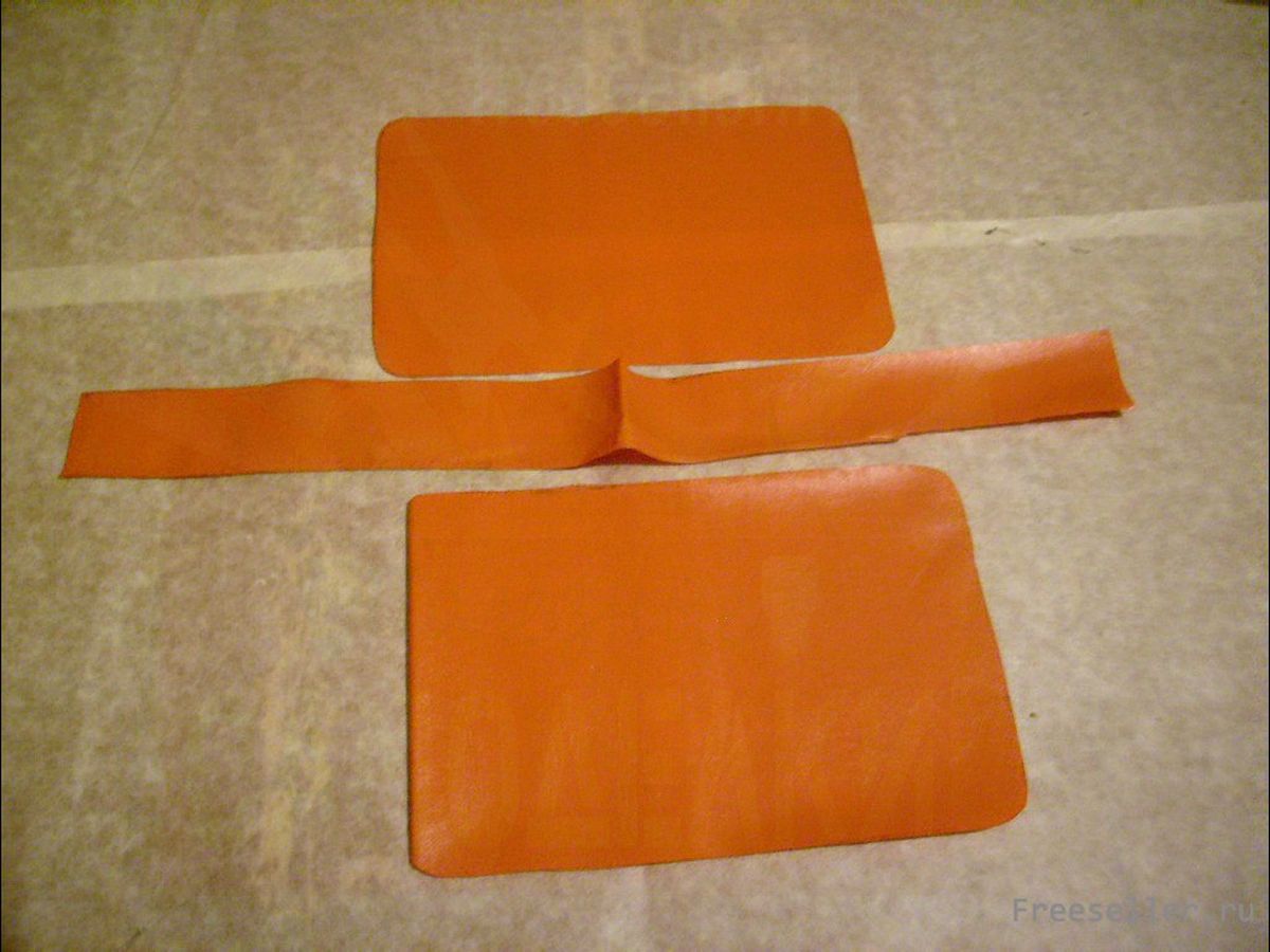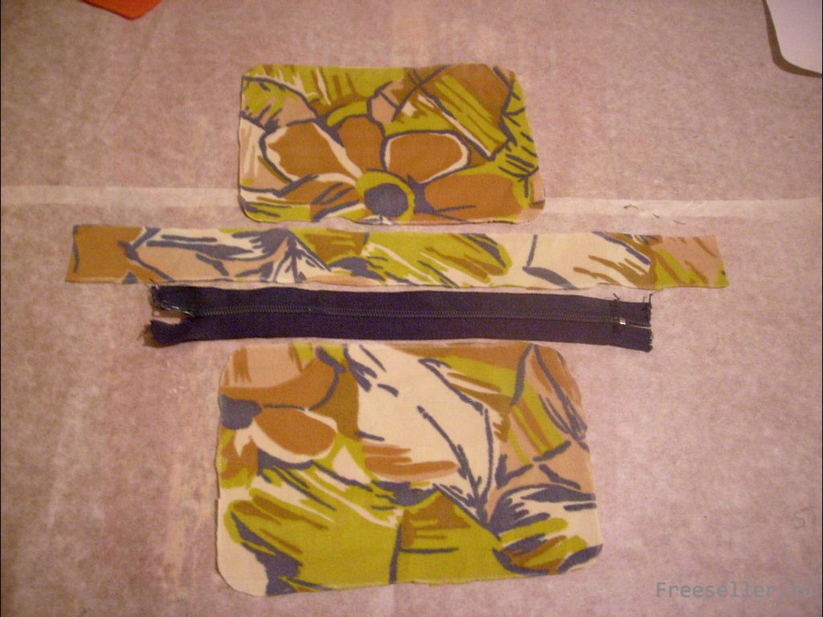 2. Выкраиваем из ткани две детали по выкройке. Боковину размером 30 см х 2,5 см (ширина молнии) вычерчиваем прямо на ткани. Вырезаем детали из ткани.