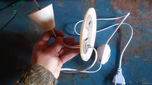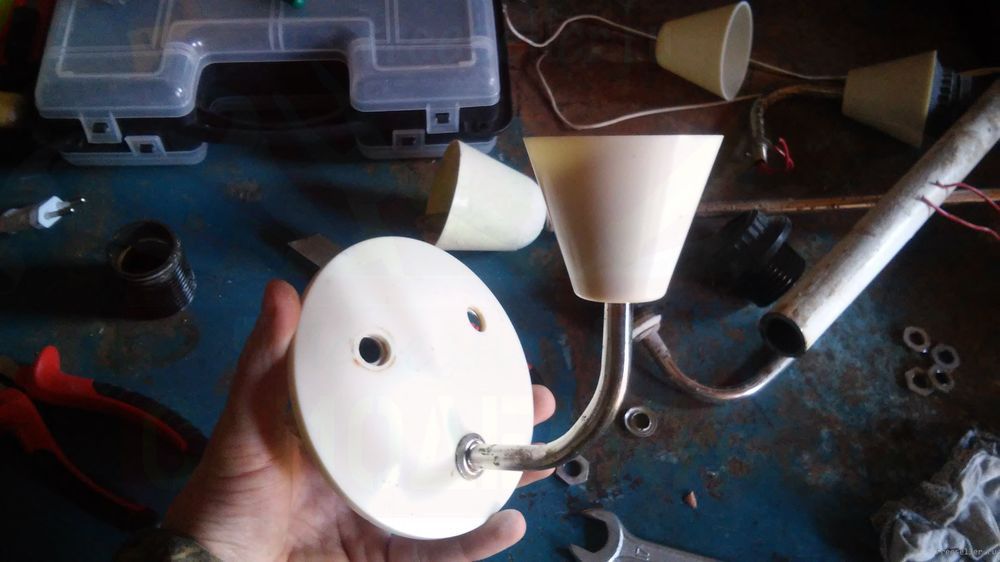 Однажды наводя порядки на чердаке, обнаружил старую люстру, на которой не хватало одного плафона, хотел её сначала выбросить, но подумал, что вдруг пригодится. И вот возникла такая потребность в ночнике над детской кроваткой, и я решил, что из этой люстры как раз получится его сделать. Вот собственно и сам процесс изготовления.