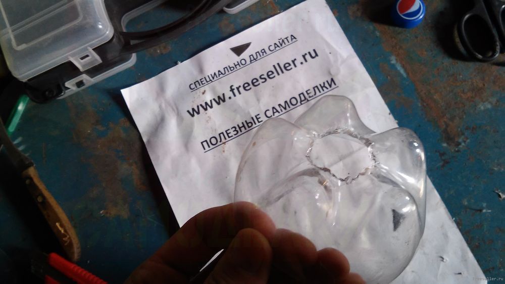 Теперь в донышке проделываем отверстие что бы в него поместилось горлышко.