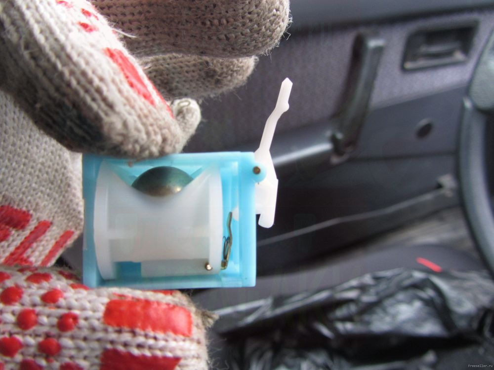 >Перед нами открывается первый механизм ремня (Извлекается свободно, пальцами) - Это коробочка с цилиндром, с шариком внутри, и "коромыслом".