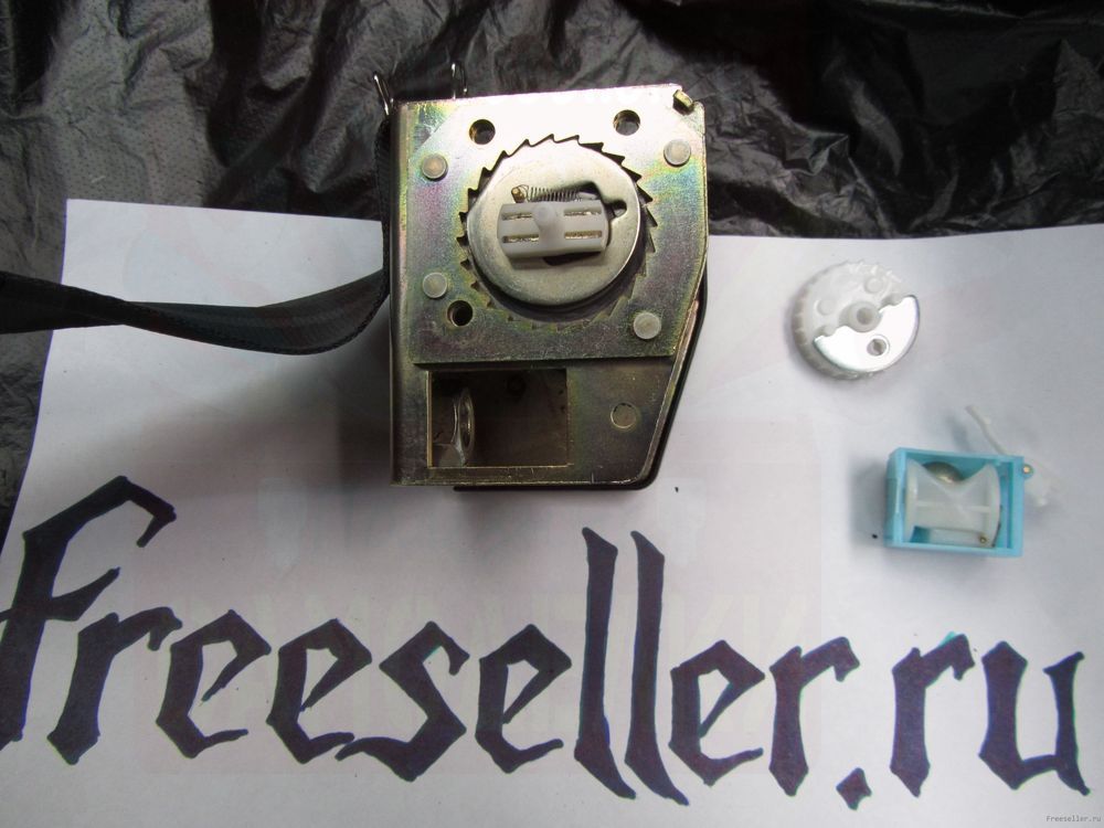 Далее второй механизм - инерционный - Он стальной и находится под пластиковой шестернёй. Она снимается свободно, пальцами.